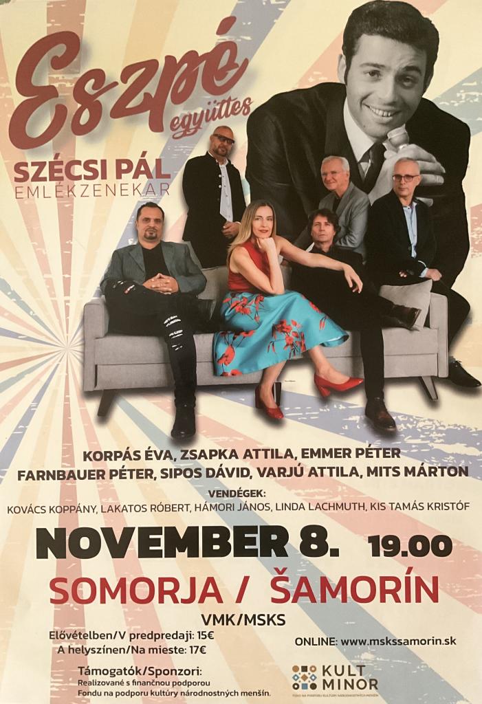 Mesto Šamorín vás srdečne pozýva na kultúrne podujatie, ktoré sa koná 8. novembra 2025 o 19:00. Na programe sa predstavia známi umelci ako Korpás Éva, Zsapka Attila, Emmer Péter a ďalší. Vstupenky si môžete zakúpiť v predpredaji za 15 € alebo na mieste za 17 €. Podujatie je podporované Fondom na podporu kultúry národnostných menšín, čo svedčí o jeho významnosti a kvalite. Nezmeškajte príležitosť zažiť skvelý večer plný kultúry a zábavy.